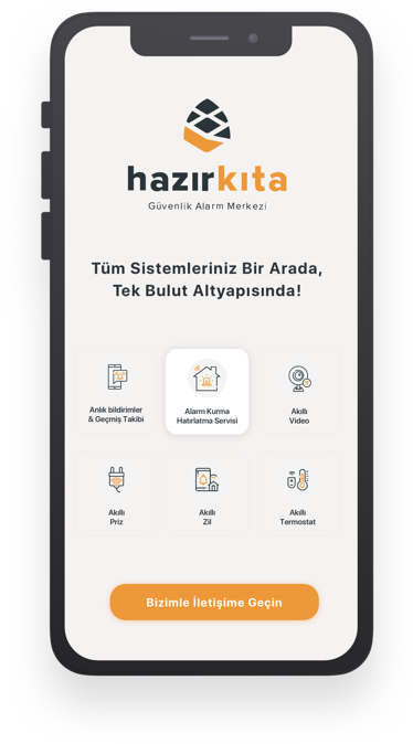 Hazırkıta ile alarm sisteminizi uzaktan kurun, kapatın, kameranızı mobil uygulamanızdan izleyin, aydınlatmalarınızı yönetin ve daha birçok akıllı güvenlik özelliğine sahip olun.